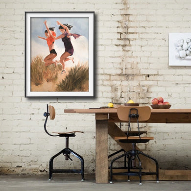 Girl jumping for joy Painting- Poster - Wall art - Canvas Print - Fine Art - from original oil painting by James Coates