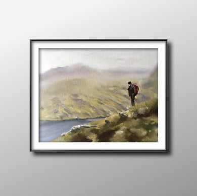 Hiker Painting, walker Wall art, Canvas Print, Fine Art - from original oil painting by James Coates