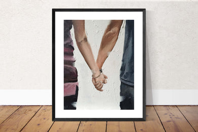 Holding hands Painting, love Wall art, Canvas Print, Fine Art - from original oil painting by James Coates
