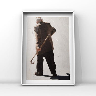 Old man Painting, Old man with cane Poster, man with cane Wall art , Canvas Print - Fine Art - from original oil painting by James Coates