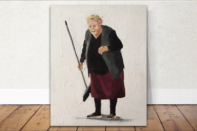 Old lady sweeping Painting, Prints, Canvas, Posters, Originals, Commissions, Fine Art - from original oil painting by James Coates